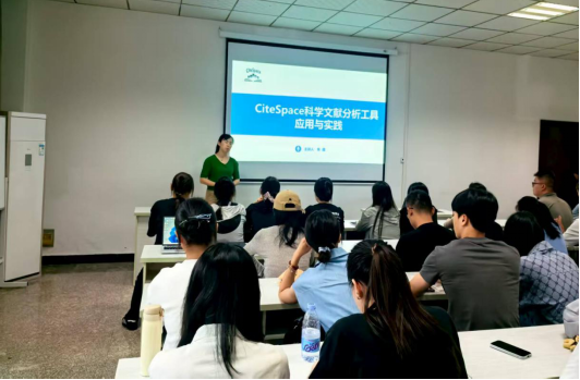 2025年9月25日下午,9728太阳集团在笃行楼四栋102教室举办“CiteSpace科学文献分析工具应用与实践”专题讲座。讲座由副院长胡彩凤主持,朱晨博士担任主讲,学院青年教师及全体研究生参会。