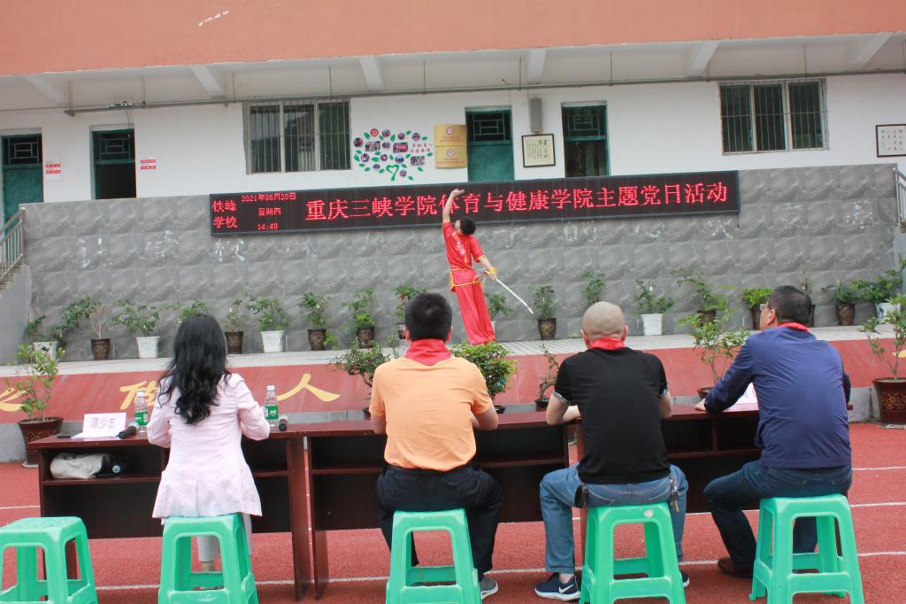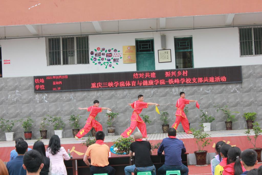 为深化党史学习教育,结合“振兴乡村战略”,扎实开展“我为群众办实事”实践活动。我院于2021年5月20日,由党总支书记杨岳、副院长黄健带队,组织教师党员、学生党员代表,赴万州区铁峰学校开展“学党史 树文明 服务乡村教育”主题党日活动。