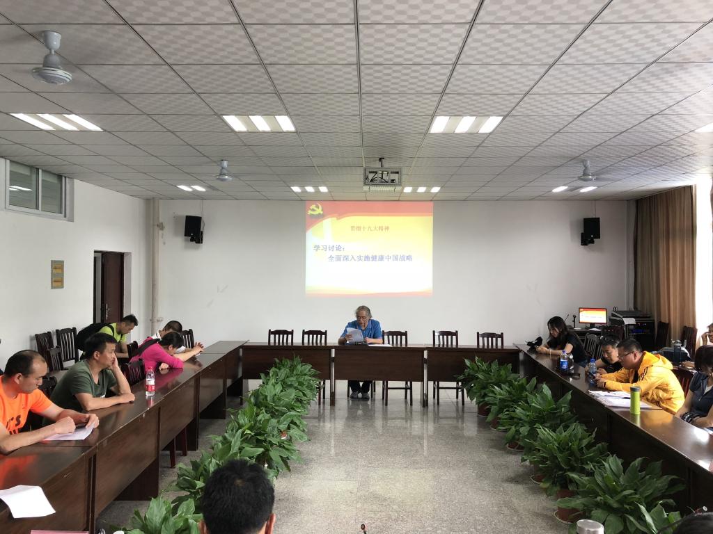 2018年5月3日,按照我院主题党日计划,组织全院教职工学习讨论《全面深入实施健康中国战略》一文,学习讨论过程中漆勇书记强调:体育运动是健康中国战略的重要组成部分,每一个体育人要深入思考,如何贯彻执行国家方略,在推广群众体育运动、打造活力校园方面做出自己应有的贡献。
