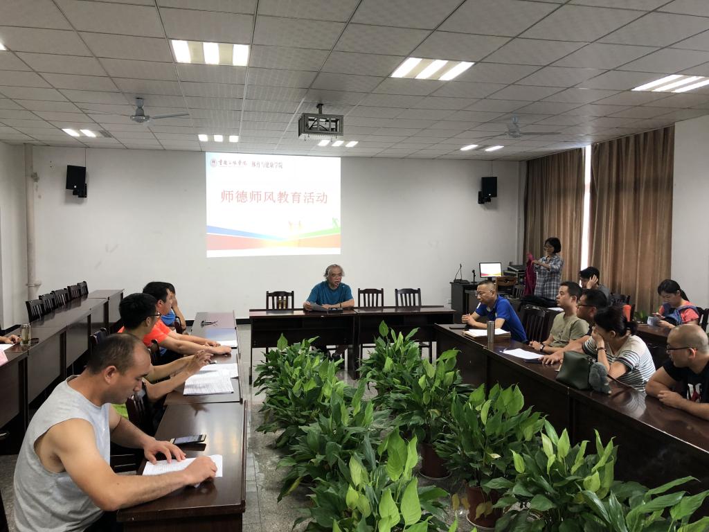 201875日,在学院四楼会议室,我院开展师德师风教育活动,会议由漆勇书记主持,全体教职工参加。