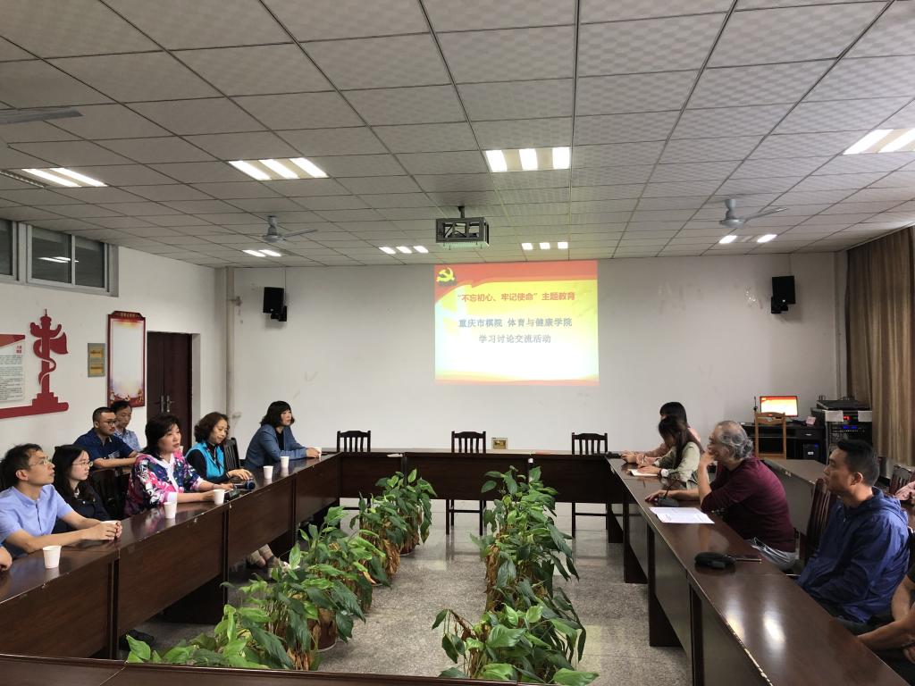 2019920日下午,重庆市棋院来我院进行“不忘初心、牢记使命”主题教育学习讨论交流活动,会议由漆勇书记主持,参会人员有重庆市棋院柯萍院长等12位来宾,我院部分教职工参加。