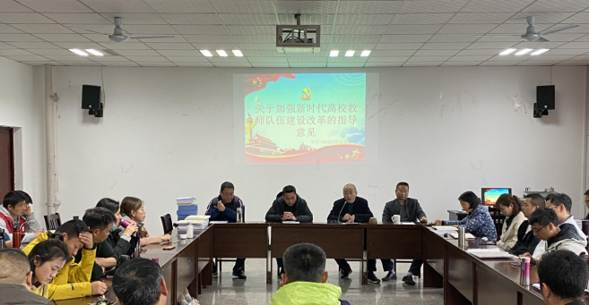 2021年3月22日在学院会议室举行学习教育部文件《关于加强新时代高校教师队伍建设改革的指导意见》(简称《意见》)及讨论会议,全体教职工参加,会议由学院总支书记杨岳主持。