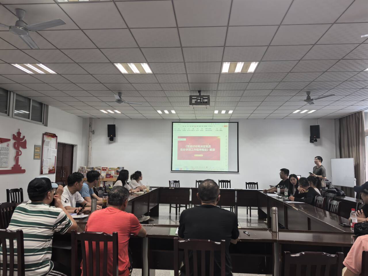 活动中,袁梦苓老师领学习近平总书记在纪念中国人民抗日战争暨世界反法西斯战争胜利80周年大会上发表的重要讲话精神;郑亮老师结合自身经历,分享了九三大阅兵的观后感;潘仲金老师为全体党员讲授了关于新修订的《党组讨论和决定党员处分事项工作程序规定》的专题党课。
