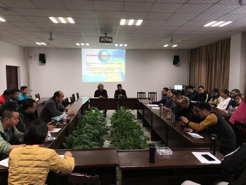 2018年10月18日我院开展学习贯彻新时代全国高等学校本科教育工作会议精神活动,漆勇书记主持,全体教职工参加。