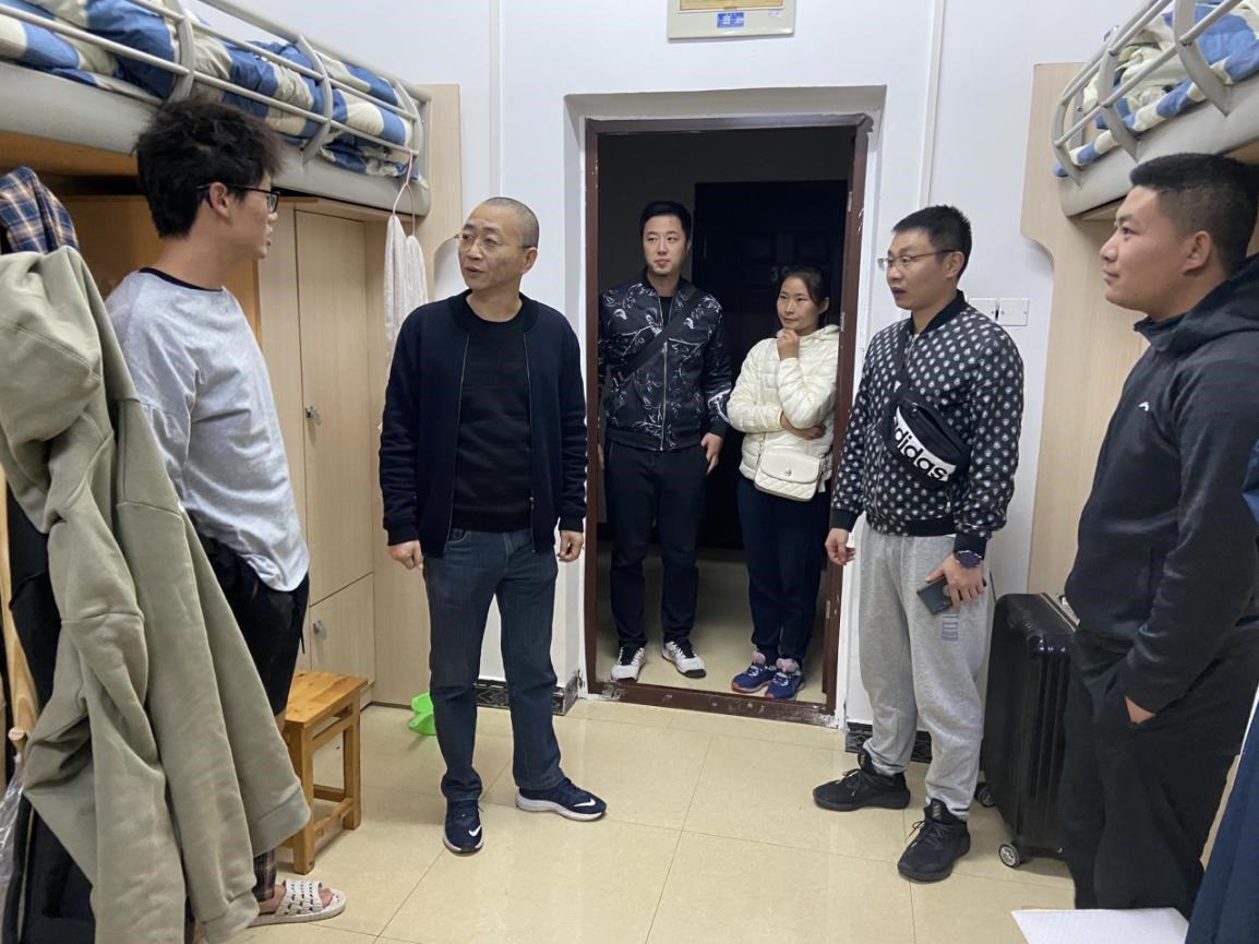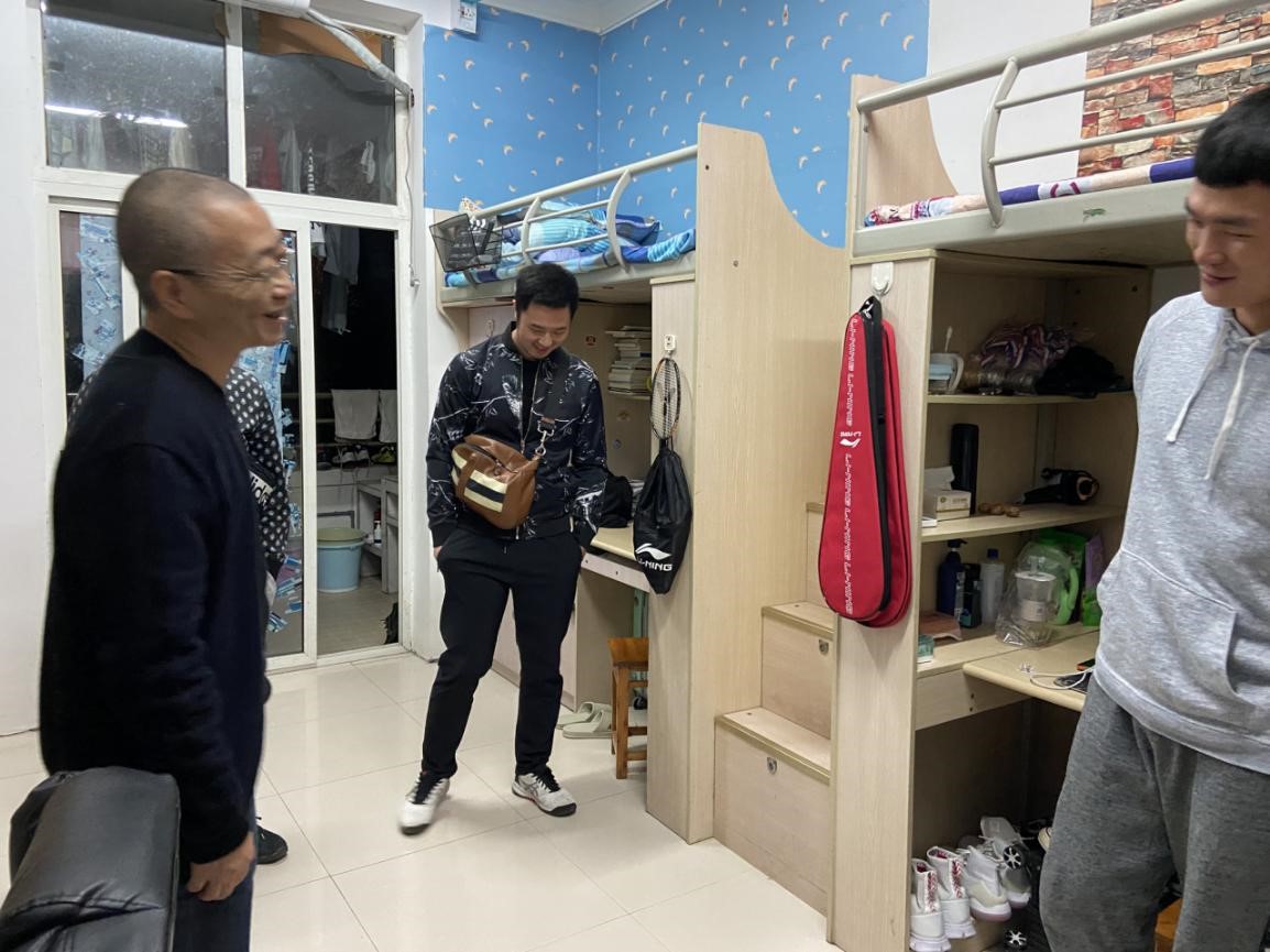 随后,全体学工人员走访了2018-2020级本科生和2020级研究生宿舍。杨书记与学生亲切交流,关心新生步入大学以来的适应情况,强调寝室卫生规范,同研究生探讨了休闲体育的理论知识和实践等。