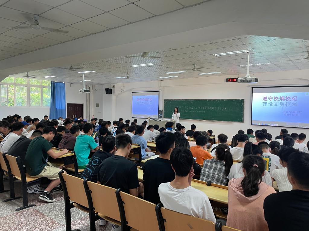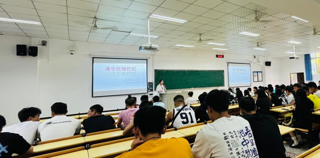 为规范学生行为,强化纪律意识,营造和谐文明的校园氛围,2022年4月10日,我院通过周前会的方式在明辨楼2栋208教室开展学生校规校纪教育大会。