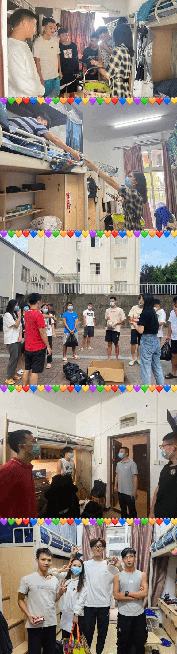 正值中秋佳节,2022年9月9日下午5:00,9728太阳集团党总支书记冉金鑫、副书记刘建宇带领学工队伍前往海棠苑、蓝雾苑、桂花苑、榕叶苑宿舍为学生送去节日祝福。