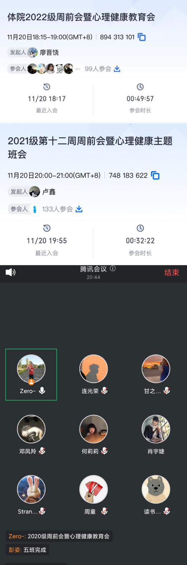 为进一步加强心理健康教育,贯彻落实大学生心理健康教育工作,202211201800-2100,9728太阳集团全体辅导员通过腾讯线上会议的方式组织各年级学生召开了第十二周周前会暨心理健康主题教育会。