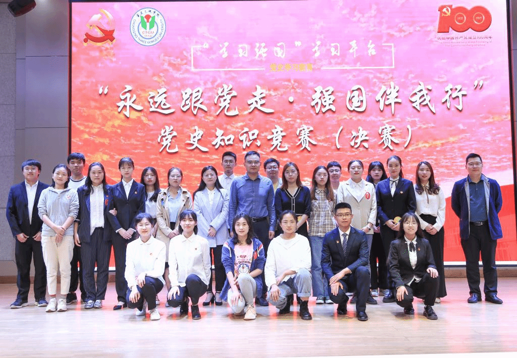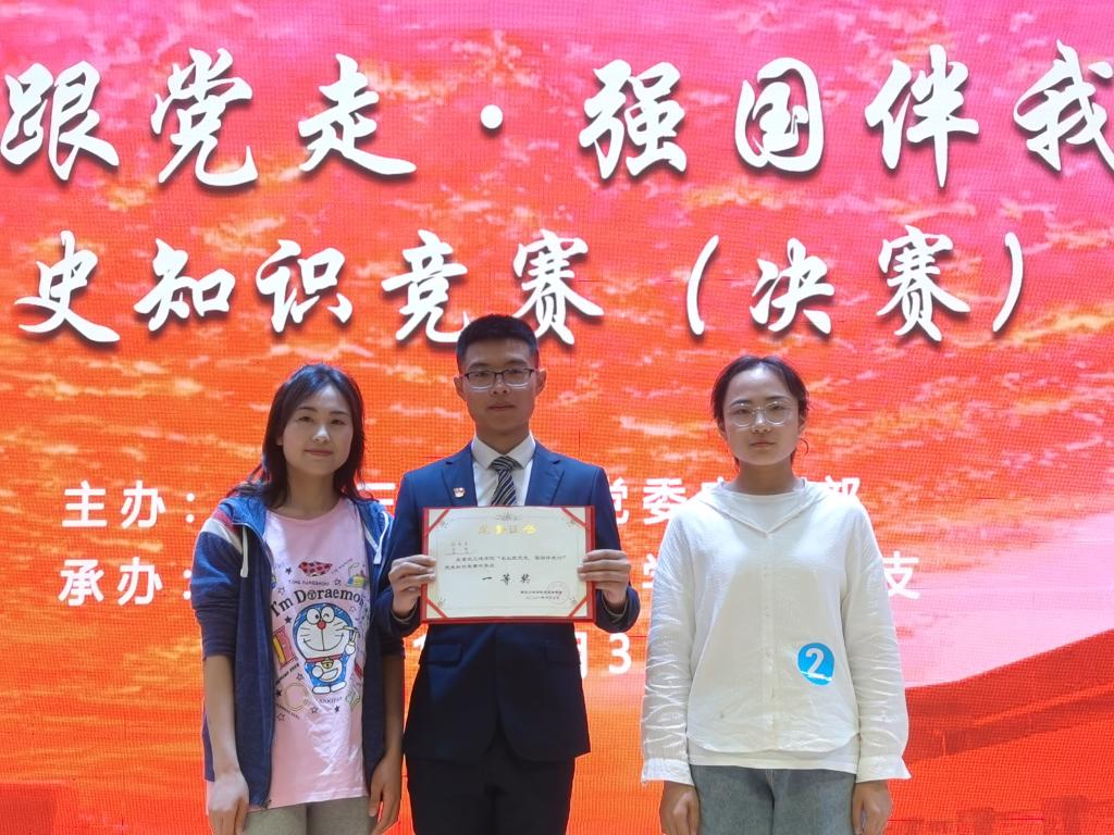 全场比赛节奏紧凑、精彩纷呈,充分展现了参赛选手们深厚的党史知识储备和理论学习成果。在经过17支参赛队伍间的奋力拼搏,由我院黄敏老师与学生陈龙、彭曼曼组成的“青春飞扬,我心向党队”脱颖而出,荣获一等奖。