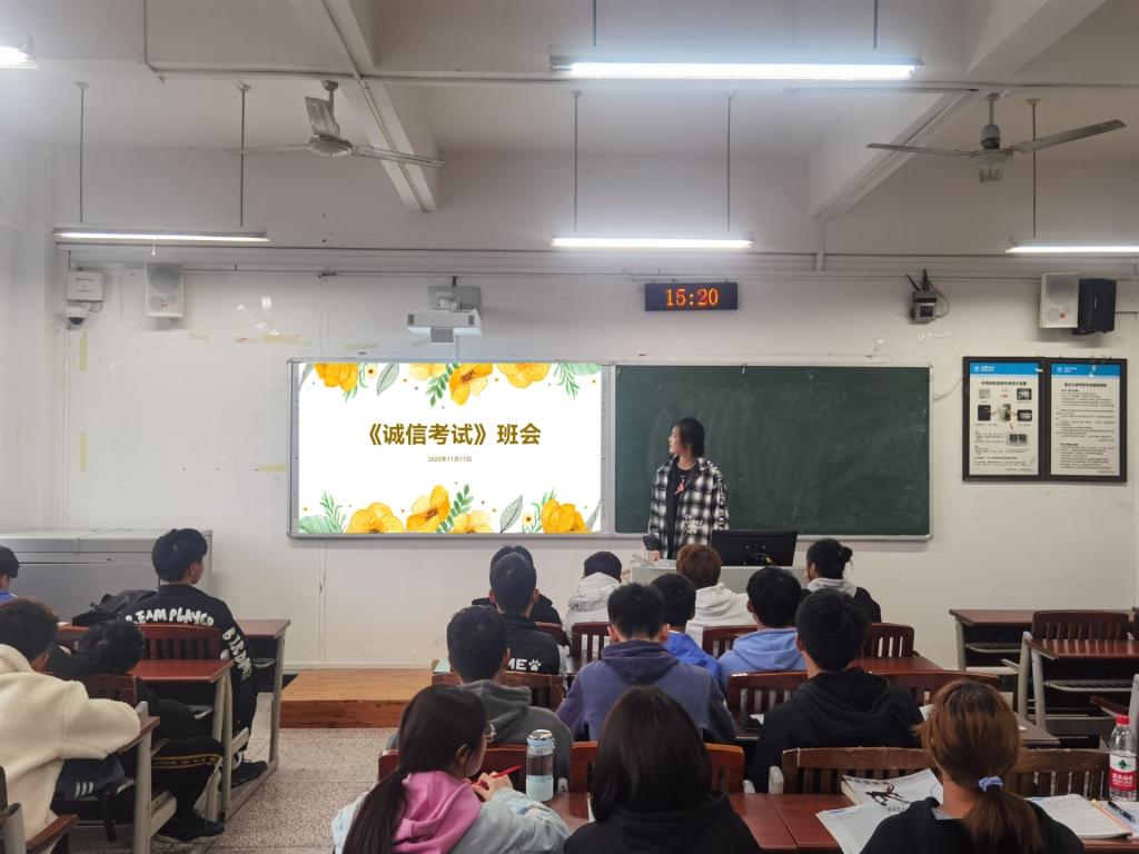 2020年11月17日在明辨楼2栋312教室2020级开展了“诚信考试”专题班会,全体同学参加了此次班会。