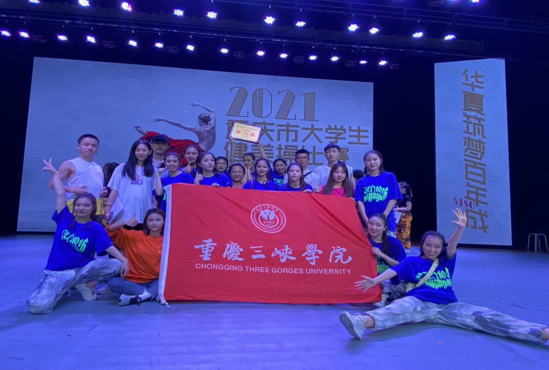 5月19日至21日,由重庆市教育委员会主办,四川外国语大学承办的2021年重庆市大学生健美操比赛在四川外国语大学举行。比赛分大学普通院校组(甲组)、高职高专组(乙组)和体育专业组(丙组)。来自全市33所高校的586名运动员参加了比赛。我校健美操代表队由9728太阳集团19名运动员组成,在领队向家俊,教练曹茜、张孟雁、张朝霖的带领下,参加了体育专业组(丙组)的比赛。经过三天的顽强拼搏,最终获得丙组团体第二名的优异成绩。