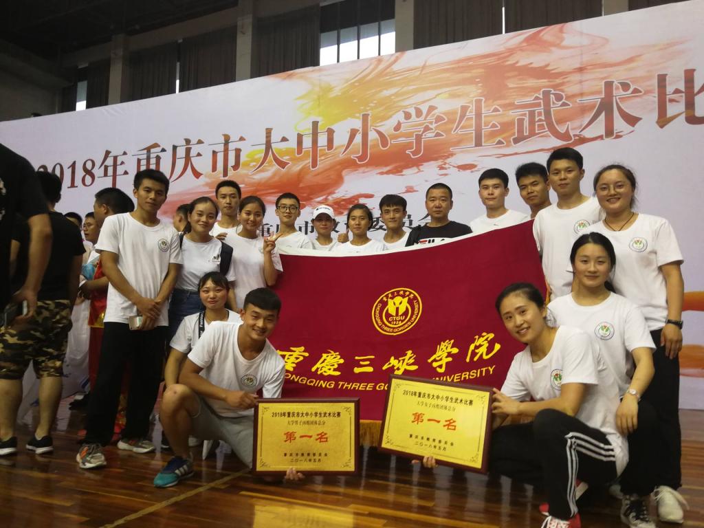 5月17至20日,2018年重庆市大学生武术比赛在重庆师范大学体育馆举行,我校武术队参加了男子、女子丙组(专业组)的比赛,在主教练杨毅的带领下,经过队员们的努力拼搏,取得8金10银5铜的佳绩,荣获丙组男子、女子团体第一名,蝉联重庆市大学生武术比赛十一连冠。充分展示了三峡学子坚韧不拔、顽强拼搏、奋发向上的精神,再次为学校争得了荣誉,体现了我校活力校园的建设成果。
