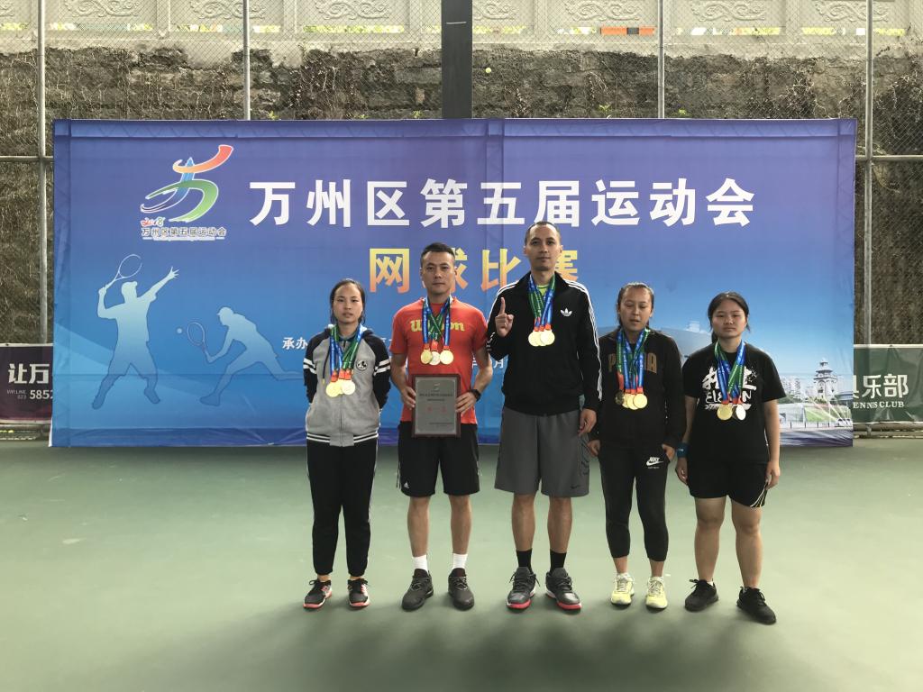 2018年10月11日-12日,重庆市万州区第五届运动会网球项目(成年组)比赛在我校百安校区网球场举行。我校代表队由体院的四名老师(冯创、魏星临、何兴权、孙阳)和四名学生(钟茂琪、荣帏帏、余佳霞、刘家梦)组成。经过顽强拼搏,获得全部7个分项比赛的金牌,并取得该项目团体总分第一名,体现了三峡学院师生精神风貌,创造了我校参加万州区运动会网球比赛的历史最好成绩,为学校争得了荣誉。