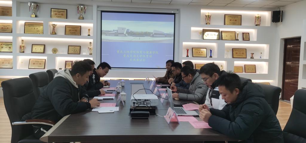 2月22日,重庆交通大学体育部隆承宏主任一行3人来访我院进行调研交流,我院刘铮副院长、冉金鑫书记、刘建宇副院长、科级干部代表和教练员代表出席交流座谈会,会议由刘铮副院长主持。