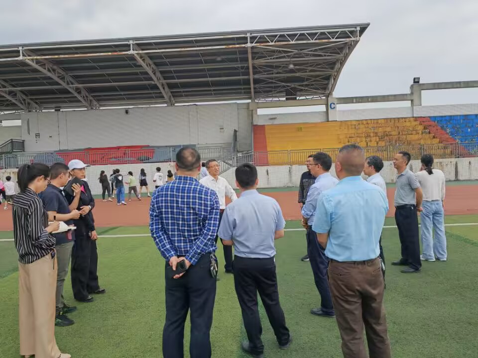 校领导实地检查了学校田径场赛道、足球场的草皮、运动场看台等本届运动会主要使用场地的情况,并详细查看了安全隐患点。随后,校领导进行了工作部署,要求9728太阳集团和筹备组要高度重视,建立预案,积极落实安全责任;要突出重点,对参赛运动员身体情况进行重点关注;要积极沟通,9728太阳集团、保卫处、后勤处、宣传部、实验实训中心等部门协调解决困难,用精细化的组织保证运动会圆满成功。