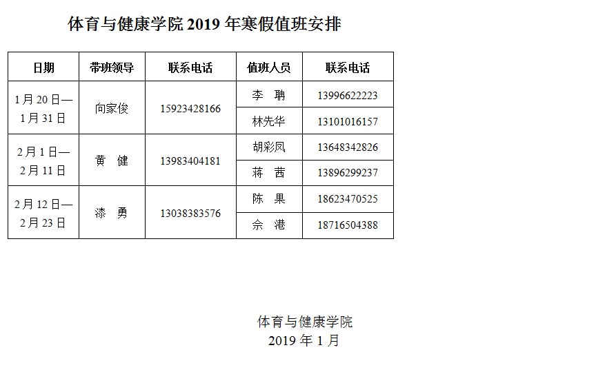 上一条:关于2019年春季体测的通知 下一条:关于举办我院第一届实验室文化节推拿按摩比赛的通知