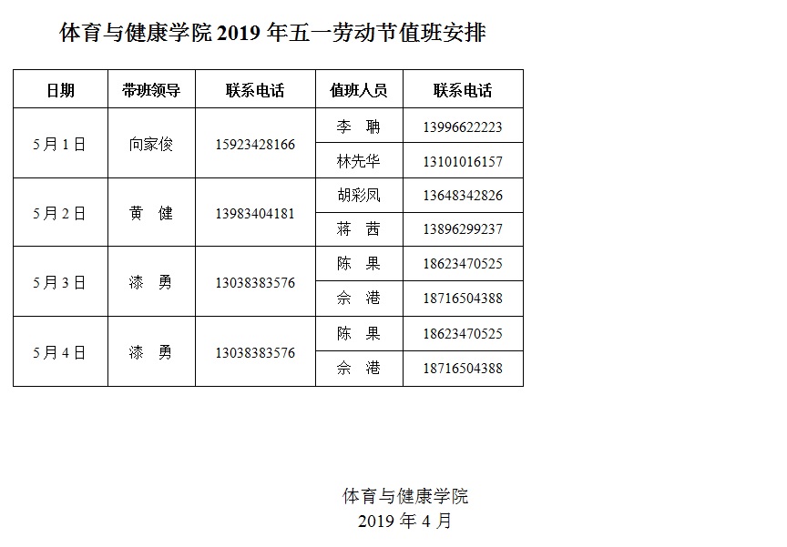 上一条:关于2019年体质健康毕业清理测试的通知 下一条:2019年五一节期间学生安全注意事项
