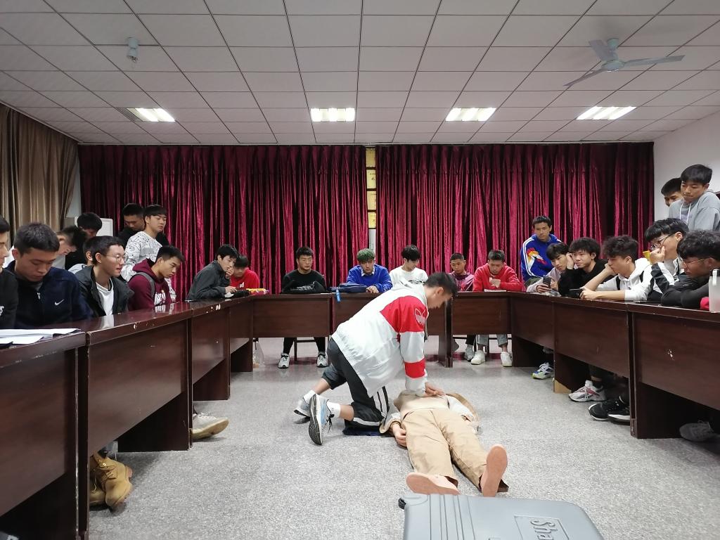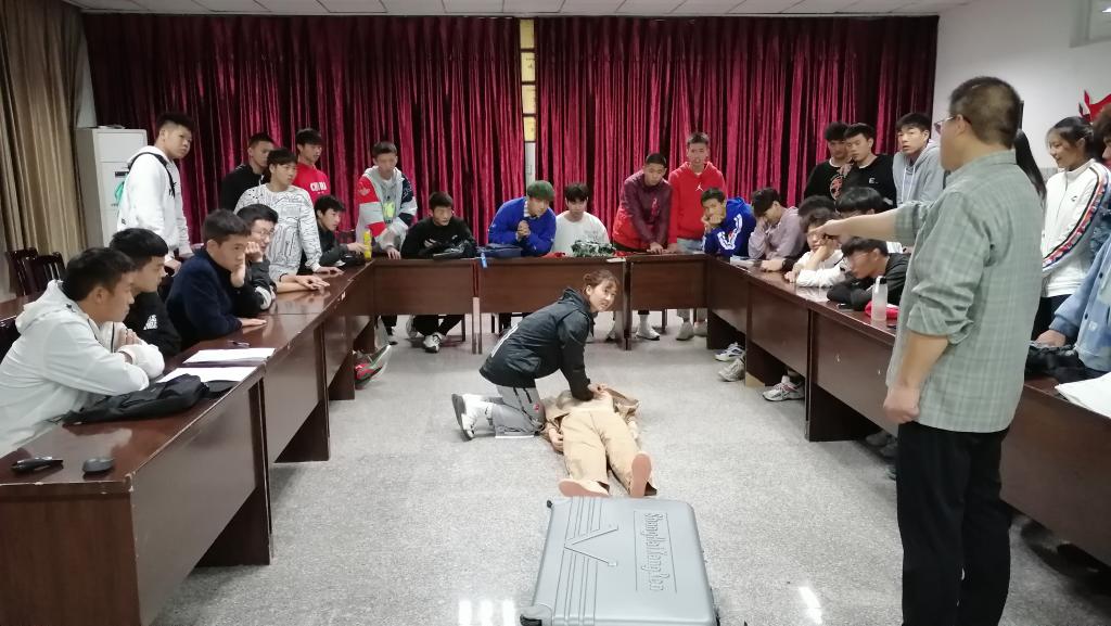 10月28日,由大学生体质健康测试中心组织,在笃行楼4栋410对本期体测工作人员进行应急急救技能培训。培训由我校校医院院长李广周教授亲自讲授。李教授主要从现场急救的处理原则、处理步骤、处理要点、处理技术等理论方面入手,并亲自进行示范,为现场工作人员展示了一堂生动而专业的技能课。
