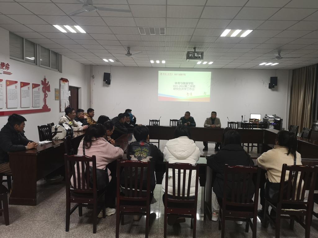 新学期伊始,2022年2月27日晚上七点半,我院在笃行楼四栋会议室召开研究生新学期工作会。黄健副院长、刘铮副院长、辅导员佘港老师及我院全体研究生参加本次会议。